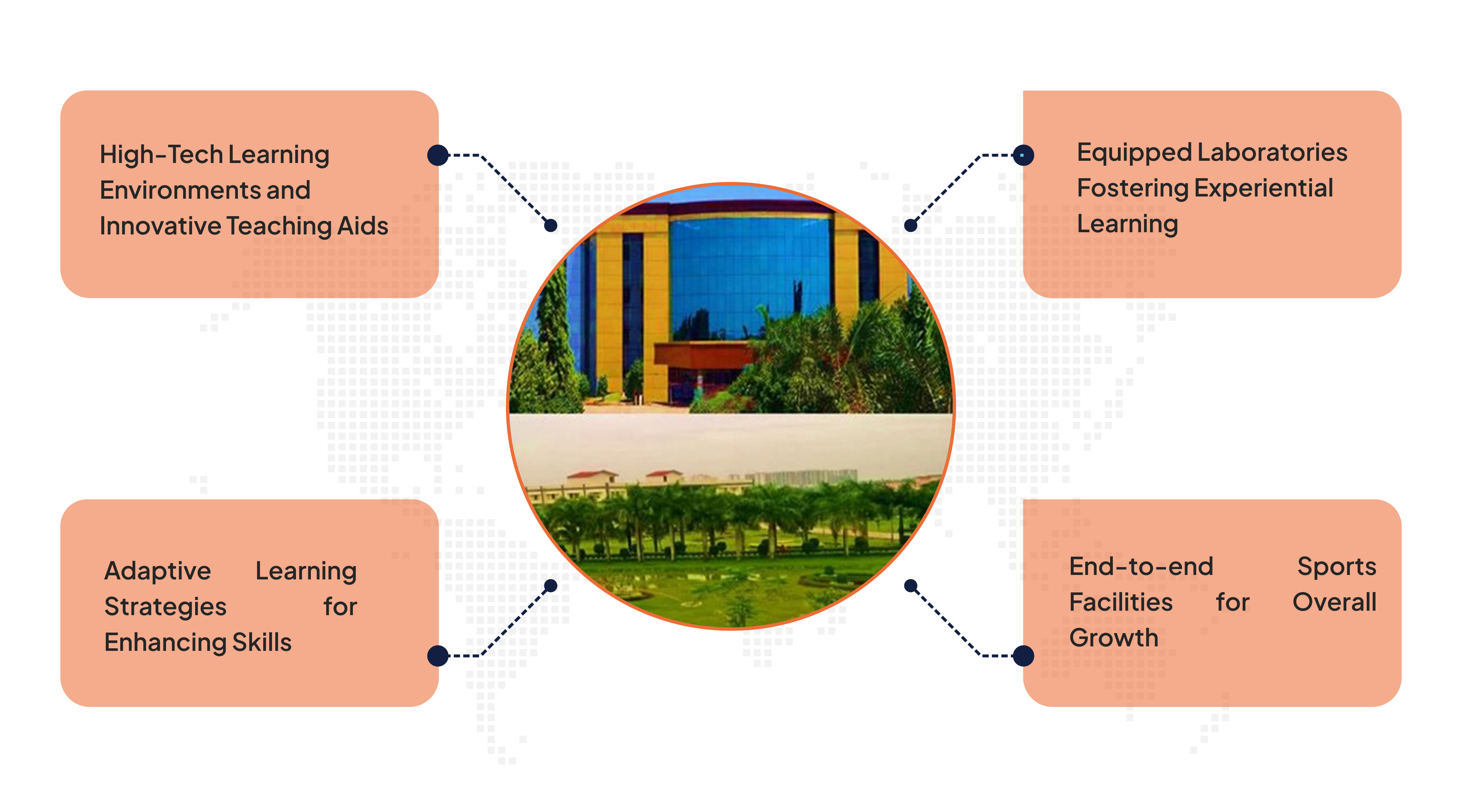 Find the Ideal Learning Environment! Our campus boasts advanced infrastructure in the shape of hi-tech hostels, a large library, well-equipped labs and vibrant sports complexes, offering an all-round student life.